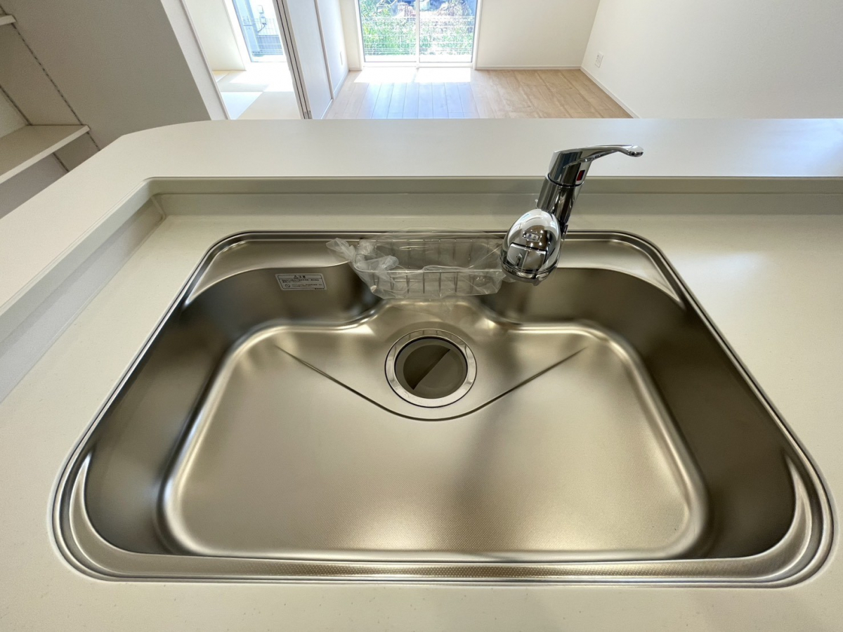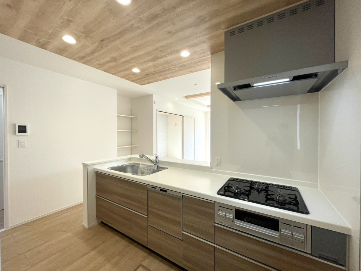 物件のおすすめポイント耐震、制震に優れた【ダンパー】採用!リビングが見渡せる【対面キッチン】1号棟、キッチン後ろには調理器具などが片づけられる【可動棚】