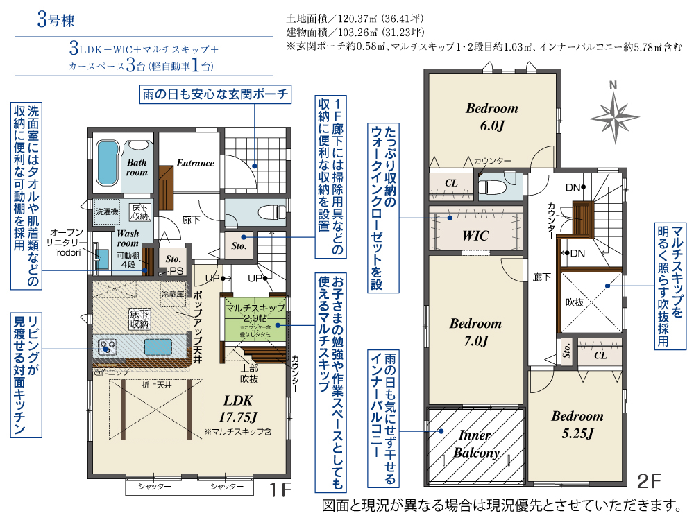 資料請求/現地見学【和室・マルチスキップ・可変式間取】家族構成に合わせて選べる異なる間取り全4棟