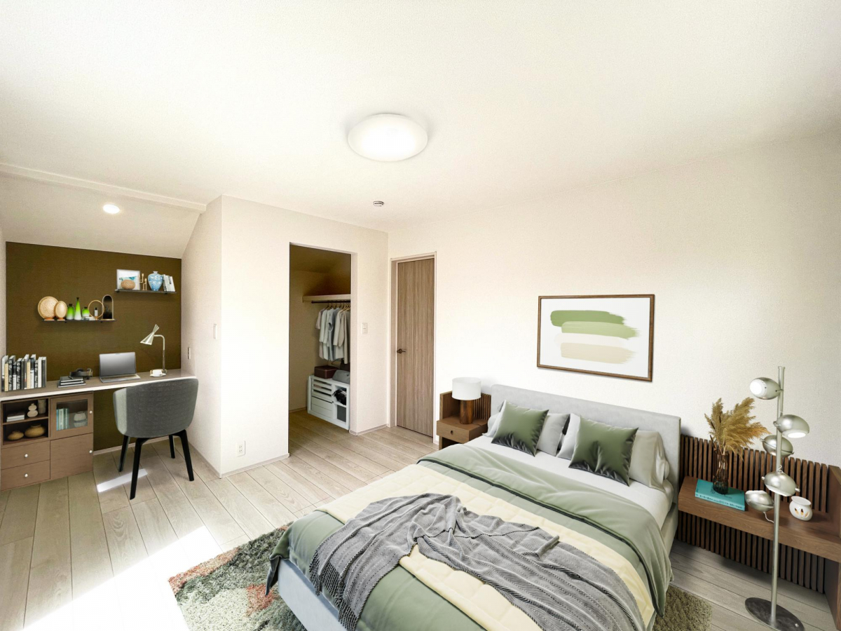 (2)号棟 ワークスペース付き主寝室(※家具等をCGで加工しています。家具付き販売ではございません。)
