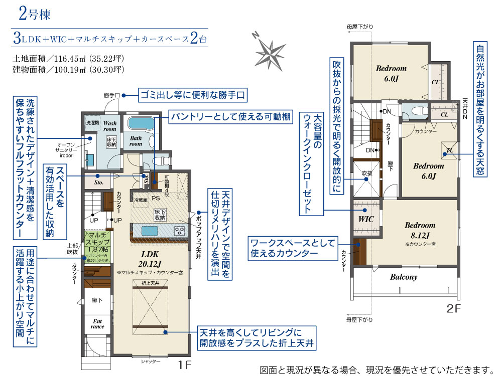 - 浴室乾燥機、シャンプードレッサー、洗浄便座、トイレ2か所、バス1坪以上