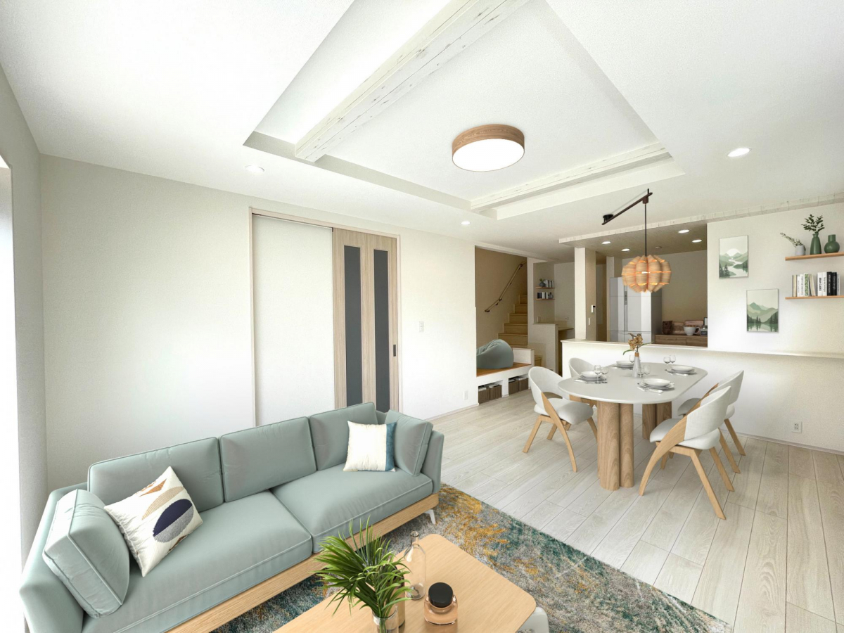 (2)号棟 明るくアクセントクロスがかわいいリビング(※家具等をCGで加工しています。家具付き販売ではございません。)