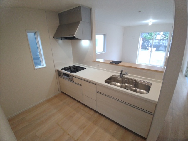 資料請求/現地見学毎食の配膳が楽なカウンターキッチン採用、食卓とキッチンが繋がっていで便利です。家族というコミュニティ支える4LDK。