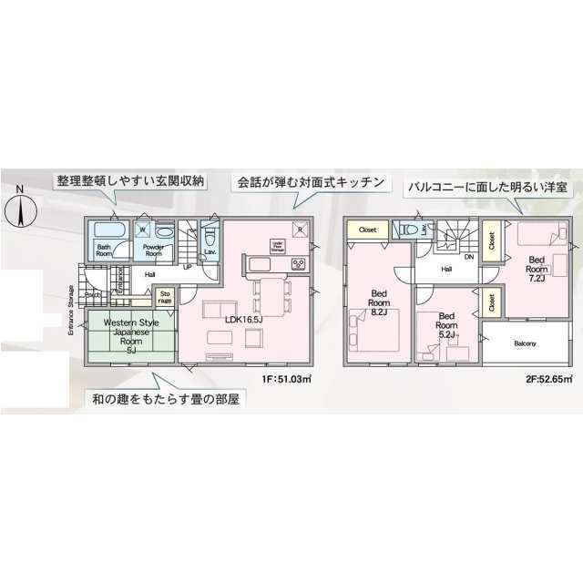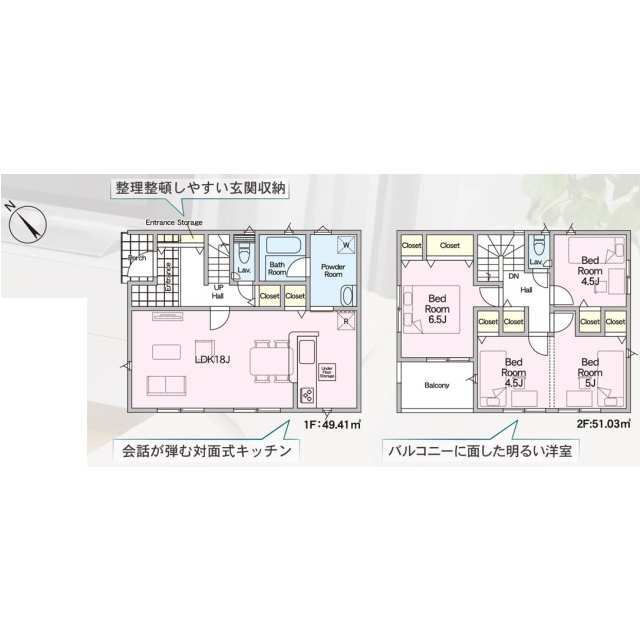 会話が弾む対面式キッチン LDKの隣室に和室あります 2階は各居室に収納完備となっております
