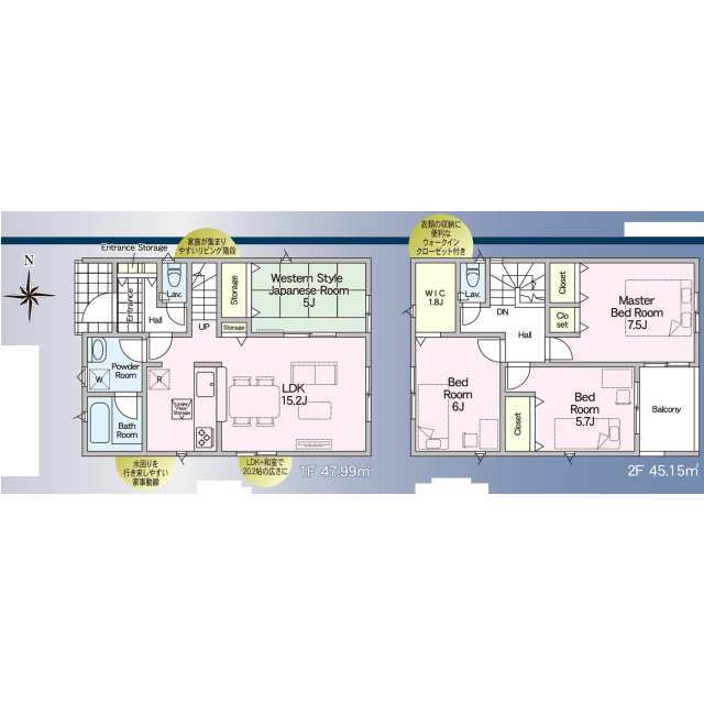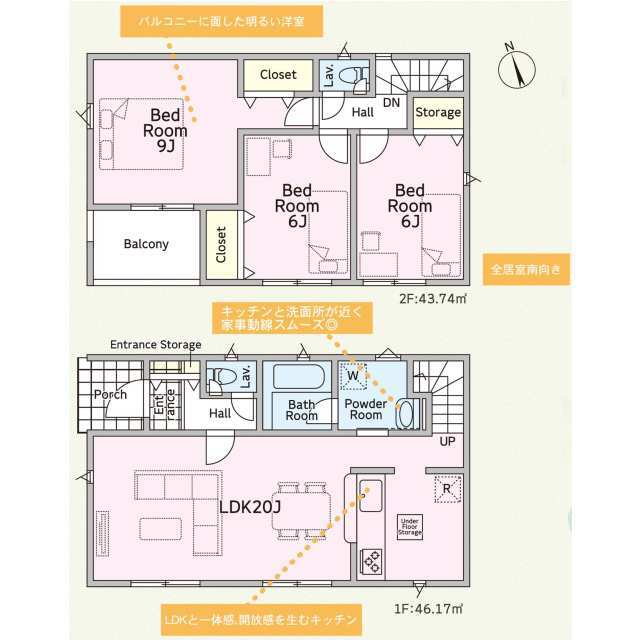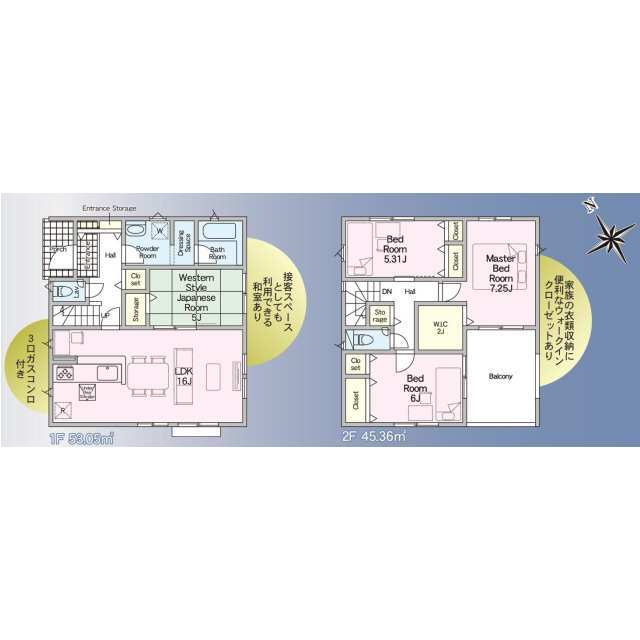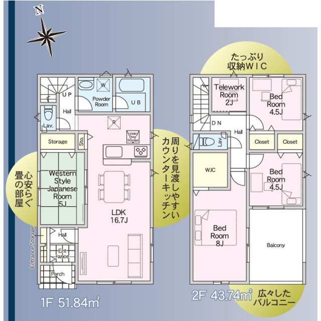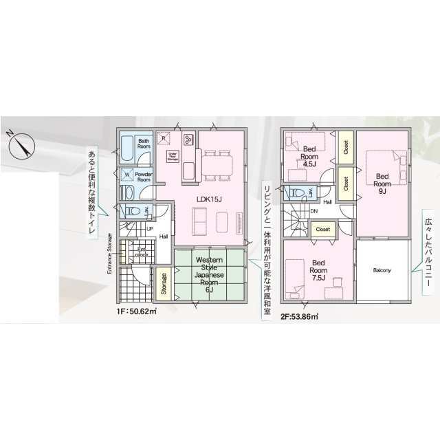 全棟LDK15帖超え。会話が弾む対面式キッチン。 1号棟 WIC付き!2号棟 テレワークルーム付き! TVモニター付インターホンや防犯対策に心強い防犯カメラ完備。