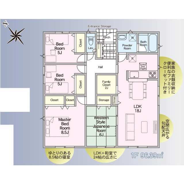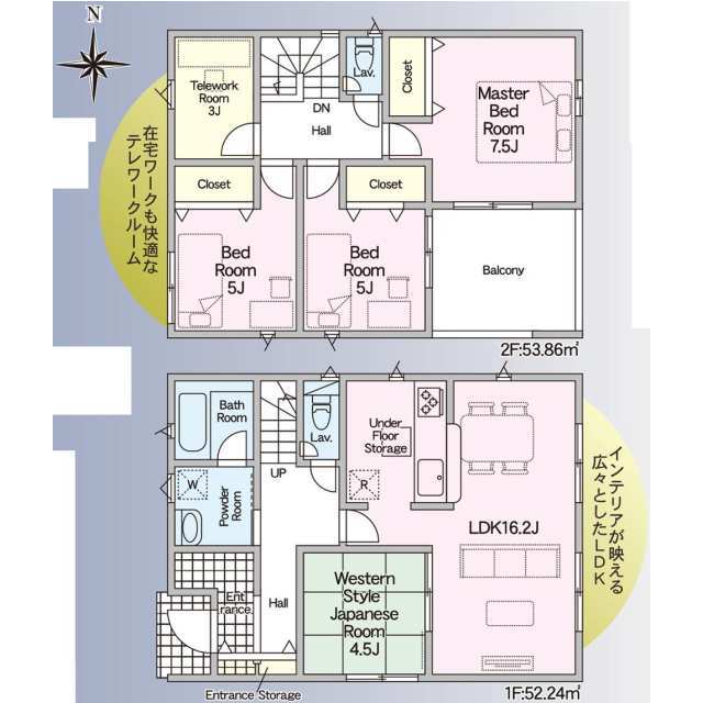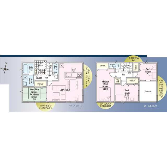 LDK16帖以上、主寝室7帖以上、全居室収納付。