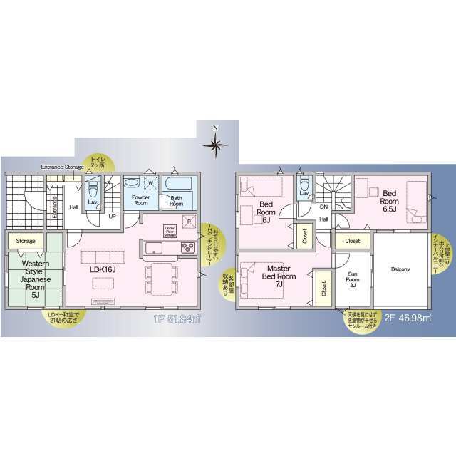 LDK16帖以上、主寝室7帖以上、全居室収納付。