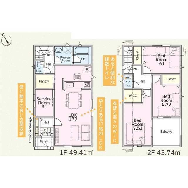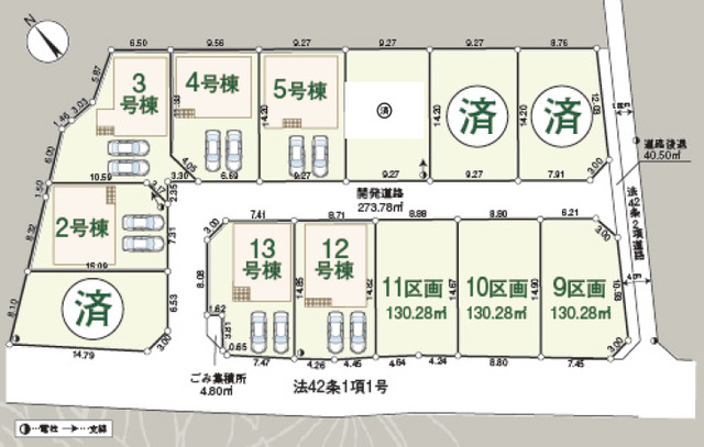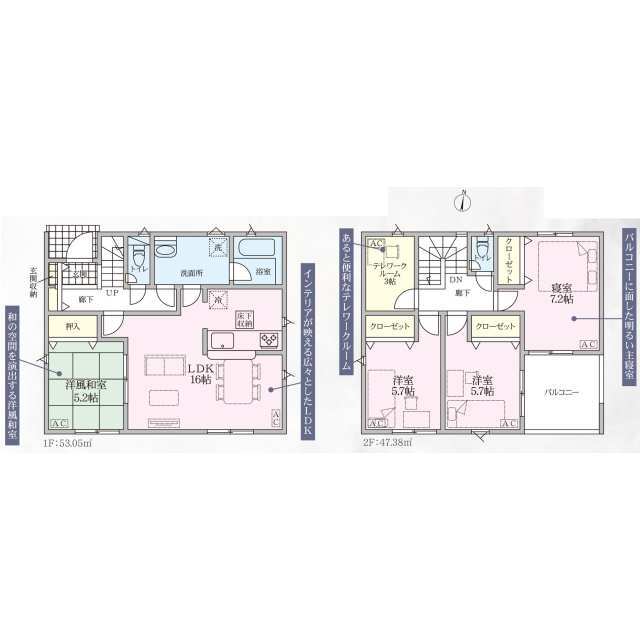 駅近、小・中学校徒歩圏内、閑静な住宅街、防犯カメラ【1号棟】サービスルーム【2号棟】リビング階段【3号棟】2WAY動線【4号棟】全室6帖以上【5号棟】広々パウダールーム