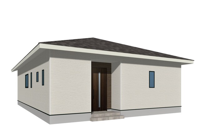 鏡面保護シールが初々しい新築の建物、更にコンロやシンクがセットされたシステムキッチン設置済で一体感のあるデザインの台所です。家族の安心拠点になる3LDK。