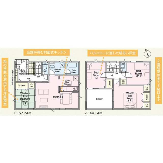 毎食の配膳が楽なカウンターキッチン採用、食卓とキッチンが繋がっていで便利です。家族というコミュニティ支える4LDK。
