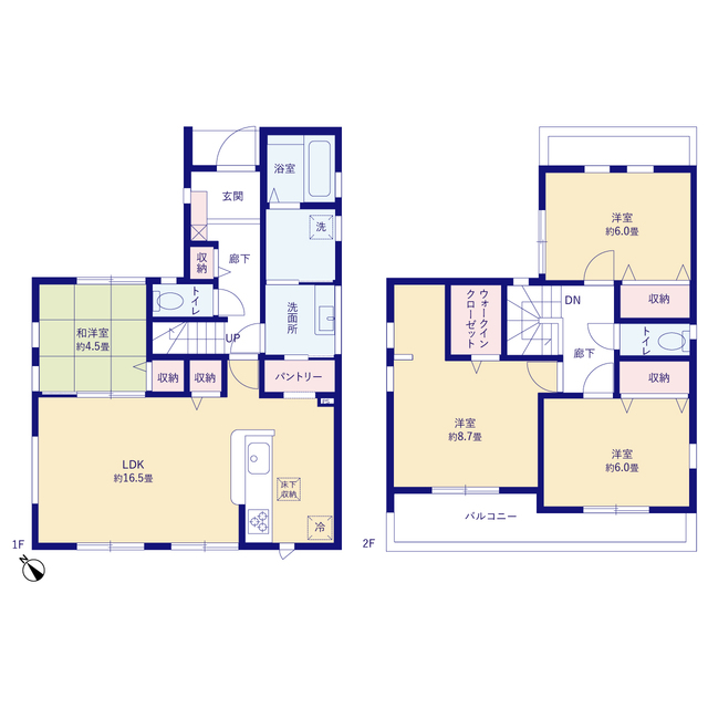 1階・2階それぞれファミリークローゼット付き!! 各居室収納スペース完備! 室内物干しスペースあり! 広々としたリビングダイニング!!