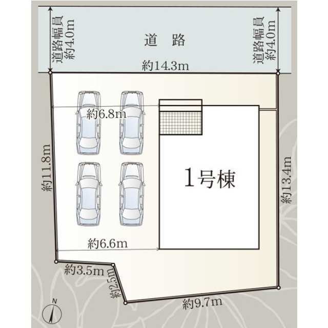 オール電化! 北東角地+南北に広い土地形状を活かした、カースペース3台可能の開放的のある邸宅!