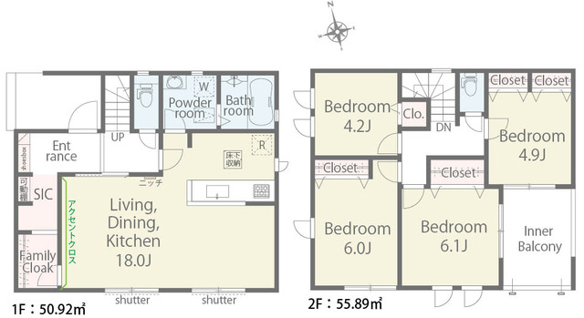 1号棟2階建て4LDK、2号棟平屋4LDK