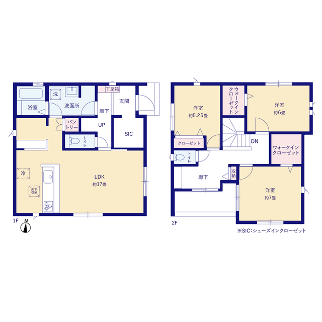 1号棟マルチエントランス+2WIC+カースペース4台(軽自動車1台)2号棟マルチスキップ+WIC+カースペース4台(軽自動車1台)3号棟WIC+カースペース4台(軽自動車1台)