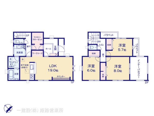 1階・2階それぞれファミリークローゼット付き!! 各居室収納スペース完備! 室内物干しスペースあり! 広々としたリビングダイニング!!