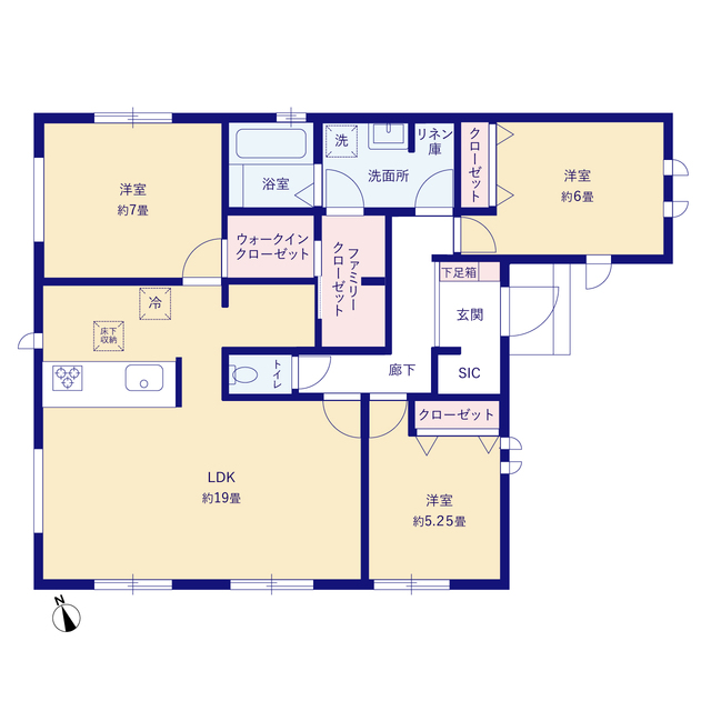 ワンフロアでゆったり暮らせる平屋なので、シンプルで無駄のない空間使いです。 家族の安心拠点になる3LDK。ご案内いたしますのでお気軽にご連絡ください。