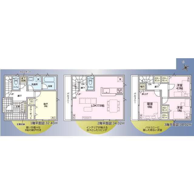 1号棟 4LDK+2WIC+カースペース3台(小型車1台)子供の遊び場や客間として利用できる便利な和室