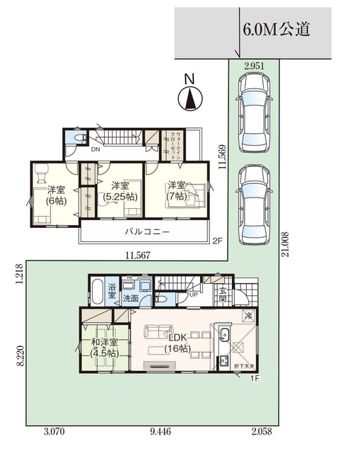 開放感のある6m公道面!カースペース並列2台可!