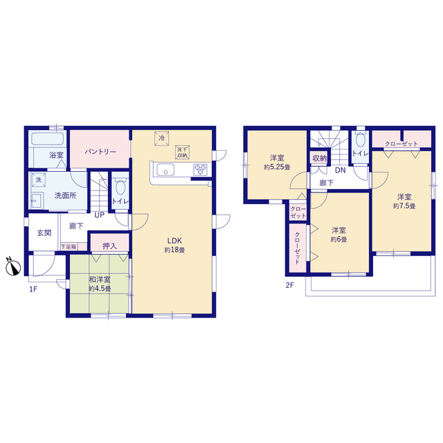 ご家族でゆったり寛げるLDK18帖! 広々とした住空間を確保 キッチンからも洗面室からも利用できる大きなパントリー完備! 小学校徒歩9分でお子様の通学も安心♪