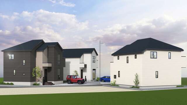 販売開始しました!!のびのび暮らせる、ゆとり空間4LDK2階建て((1)号棟)ワンフロアでシンプルな生活動線。“ちょうどいい”3LDK平屋建て((2)号棟)