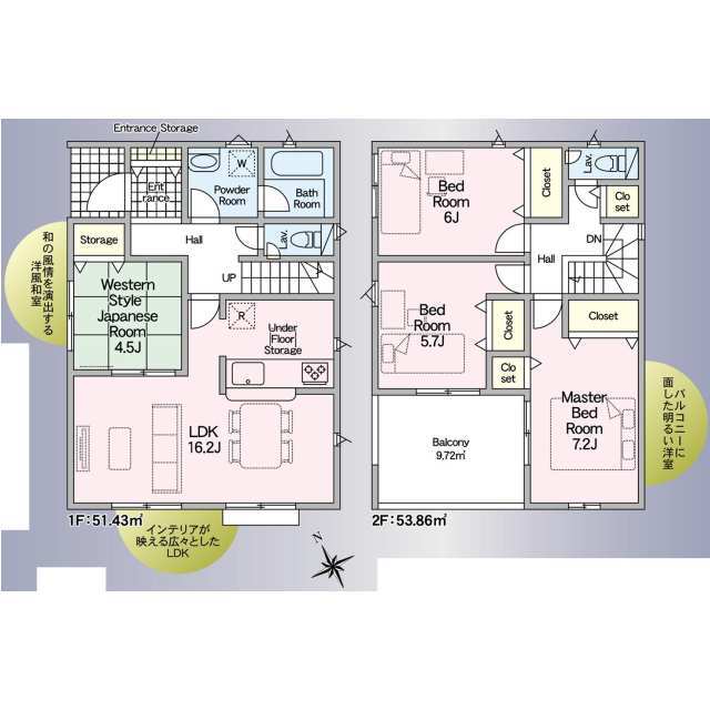 閑静な住宅街・全居室収納付き。 会話が弾む対面式キッチン。あると便利な複数トイレ。