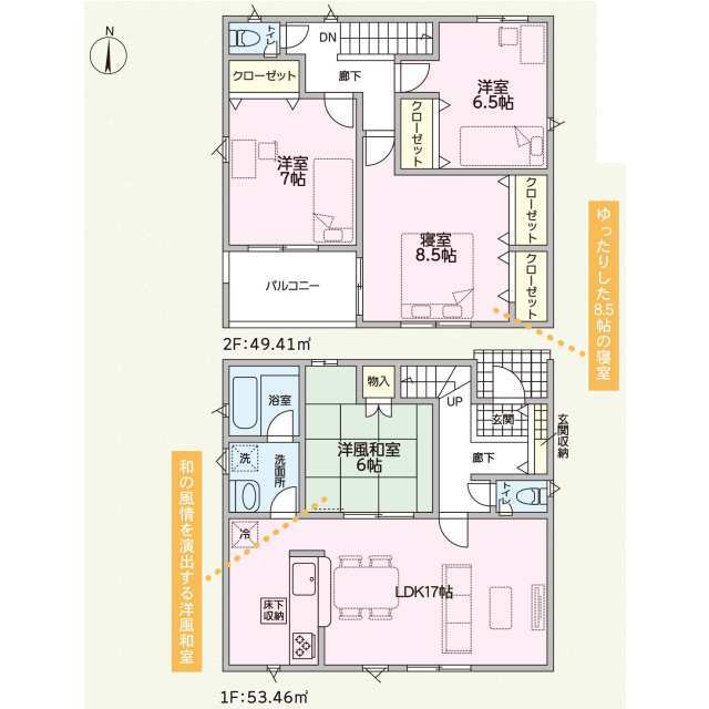 前面道路6m以上の公道に面した北東角地!! SICやWIC等の豊富な収納スペース完備!!