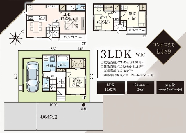 〜住空間に余裕が生まれる3階建てプランです!〜 ☆前面道路も広く駐車もラクラク♪ ☆17.6帖の広々LDK+4部屋確保