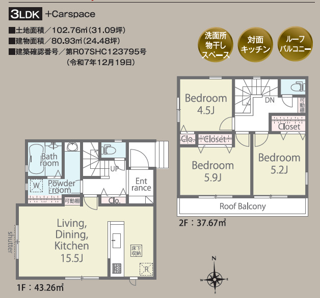?6号棟:WIC+カースペース4台(軽自動車1台)?7号棟:?マルチスキップ+フリールーム+カースペース4台(軽自動車1台)