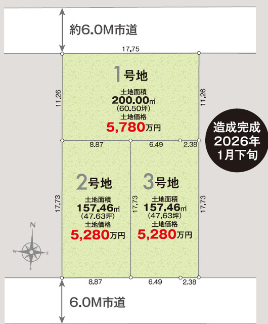 開放感のある美しい街並みに、 全17棟のゆとりある住まいが登場 敷地42坪以上、カースペース付! 小学校徒歩9分でお子様の通学も安心♪