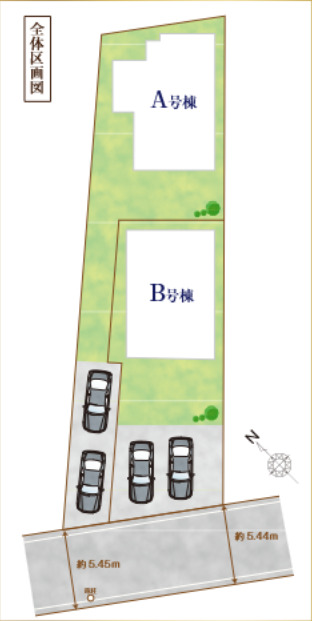〈オール電化住宅〉 駐車3台可!前面道路も広く車も停めやすい! A号棟:玄関吹抜、SIC、ランドリースペース、WIC B号棟:ランドリースペース、フリーコーナー、WIC