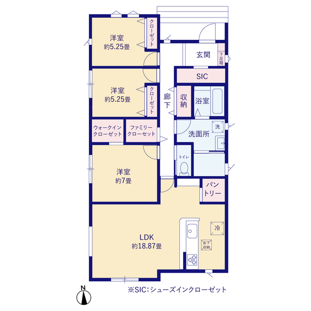 ワンフロアでゆったり暮らせる平屋なので、シンプルで無駄のない空間使いです。 家族の安心拠点になる3LDK。ご案内いたしますのでお気軽にご連絡ください。