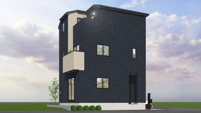 開放的な8.5m×4.5m角地に佇む3層住宅