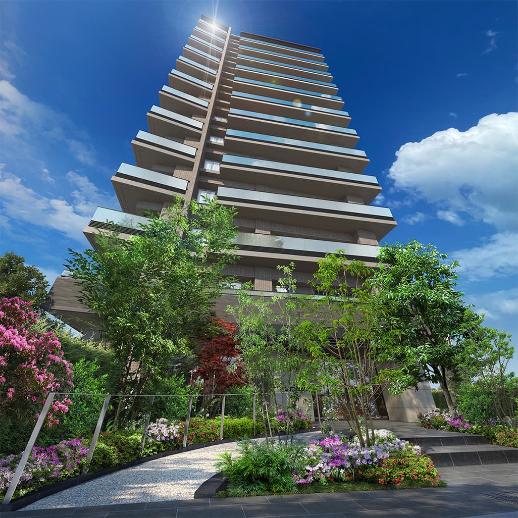 全72邸・地上13階建のレジデンスでは、ZEH-M Orientedの適合(取得予定)と低炭素建築物の認定(取得予定)を獲得するなど高品質で開放感のある住空間を追求