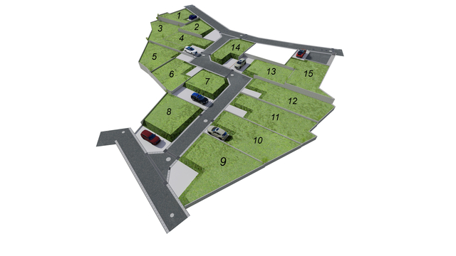 - 1区画 北西:4m 2区画 北東:4m 北西:4m 3区画 北東:4m 4区画 北東:4m 5区画 北東:4m 6区画 北西:4m 7区画 北東:4m 北西:4m 8区画 北東:4m 南東:4m 9区画 南東:4m 南西:4m 10区画 南西:4m 11区画 南西:4m 13区画 南東:4m 14区画 南東:4m 南西:4m 北西:4m 15区画 北西:4m