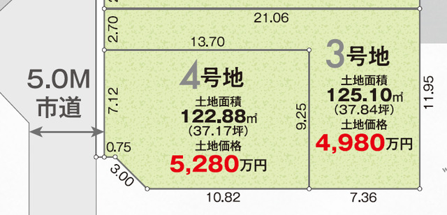 1区画 西:5m 2区画 西:5m 3区画 西:5m 4区画 西:5m