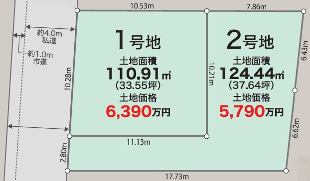 東京都西東京市緑町2丁目2509番3(地番)110.38m²・110.41m²西武池袋線「ひばりヶ丘」駅までバス7分「交番前」停徒歩4分